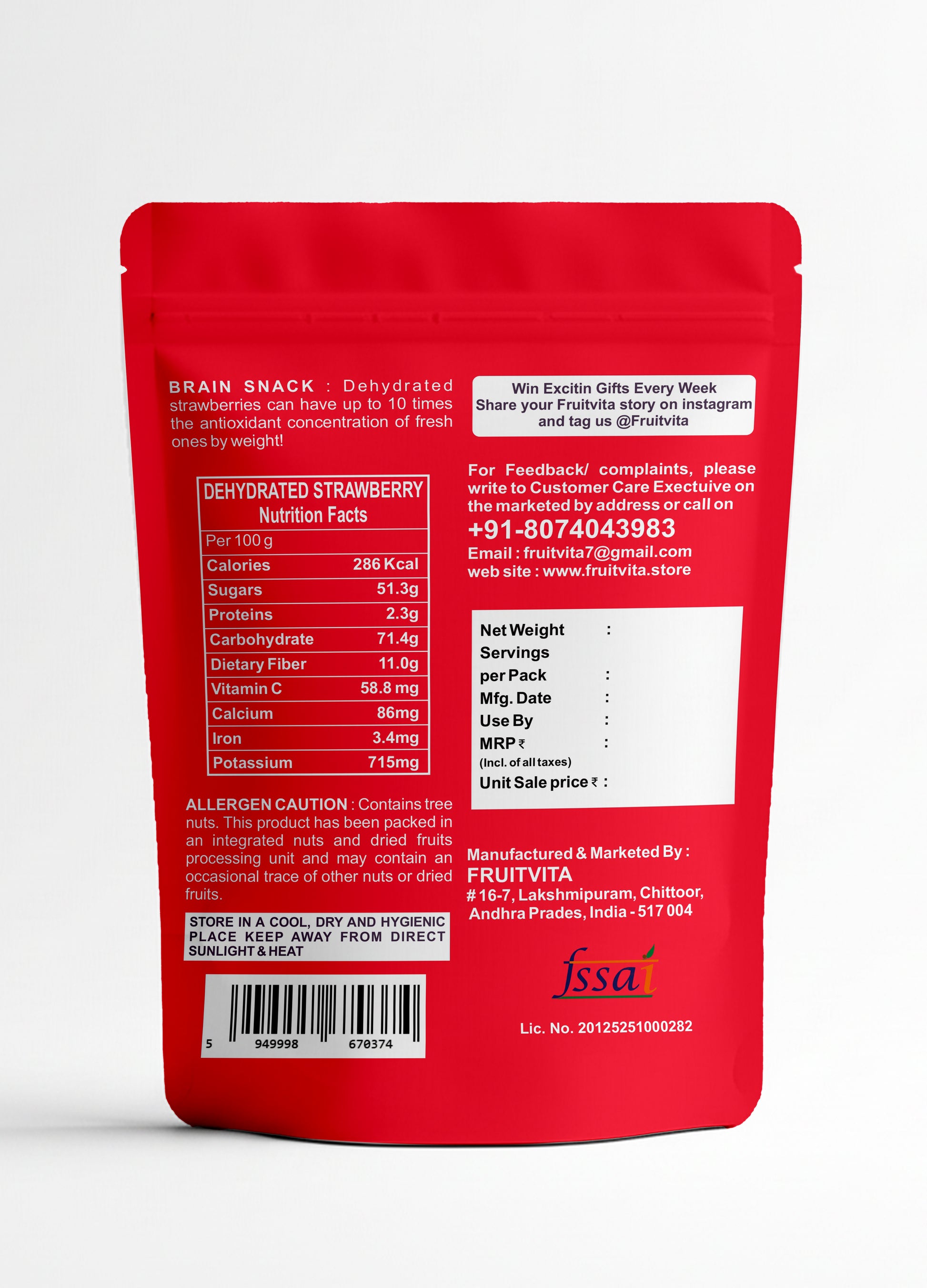 Packed with vitamin C, antioxidants, and dietary fiber, they support immune health, promote glowing skin, and aid digestion. Free from added sugars, preservatives, or artificial flavors, dehydrated strawberries are a clean, wholesome snacking option.